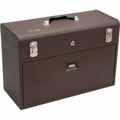 12″ deep black polyethylene plastic 2-wheeled tool case black aluminum tongue-and-groove gasketed frame to resist moisture & dirt 40″ retractable telescoping handle 2 butterfly latches padlock loops spring-loaded handle vertical ribbing for added strength top pallet and bottom pallet to hold more than 60 tools document pouch in lid additional storage under bottom pallet.