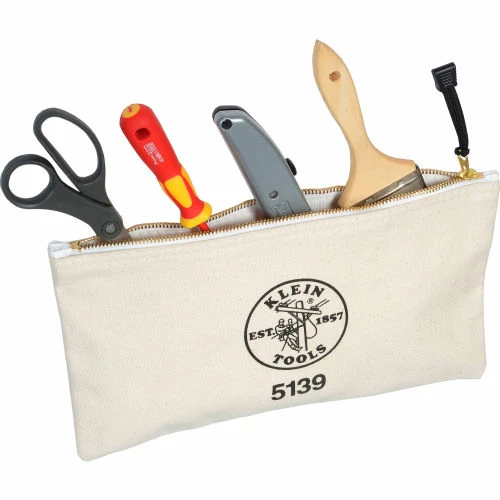 Stay organized with the Klein Toolss Canvas Zipper Bag. This natural colored canvas bag is perfect for storing most tools. The heavy-duty zipper keeps it securely closed.