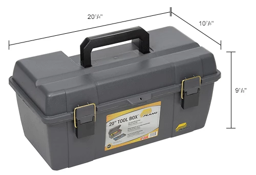 Plano’s 20 inch Tool Box with lift-out tray is great for storing tools and small parts. The bulk storage compartment in the base is ideal for larger items, while the sturdy tray holds frequently used essentials. The heavy-duty carry handle and secure brass bailed latches make transportation easy. The molded padlock tab allows you to add an extra layer of security.
