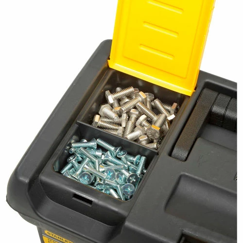 Stanley® STST13011, 12.5″ Series 2000 Tool Box with Plastic Latch Two lid organizers for small parts storage – accessible without opening the tool box. Built-in pad lock eye for small locks helps keep contents secure. Tote tray. Tools and accessories not included.
