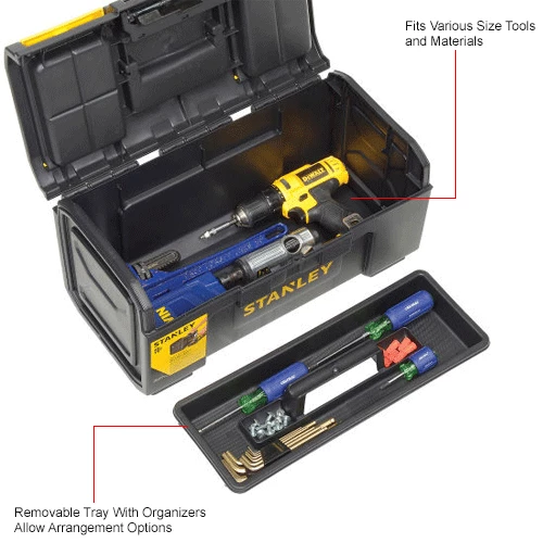 Stanley® 19″ Basic Tool Box Is Widely Used For Organized Tool Storage In Commercial, Residential And Industrial Applications.