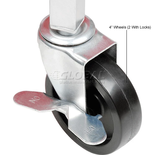 - Large, easy to maneuver 4″ wheels – 2 locking and 2 standard